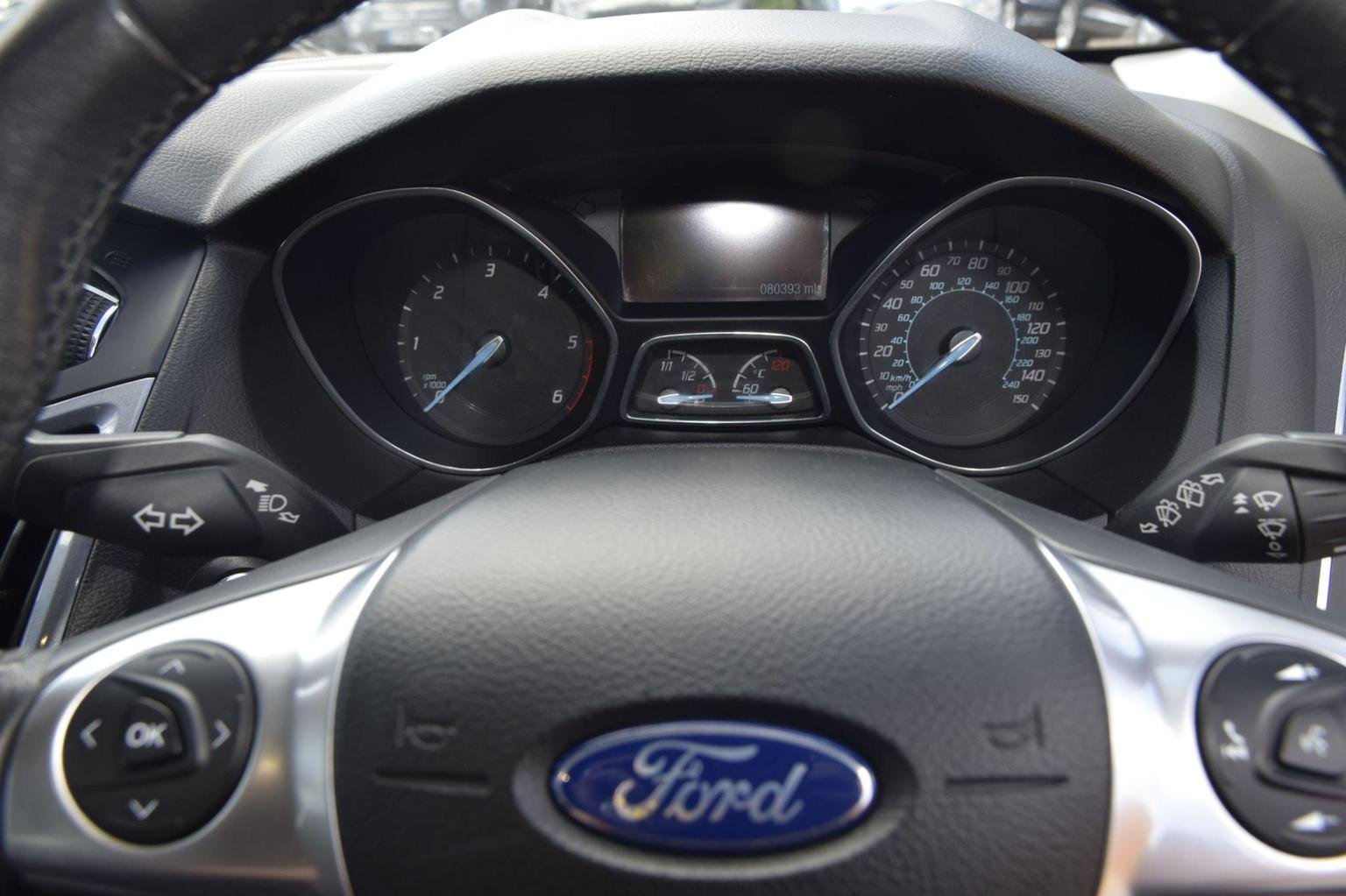 With only 80000 miles on the clock, this 2014 Ford Focus 1.6L TDCi Titanium Navigator represents a great find. As a Titanium Navigator trim, this diesel hatchback comes with a clear vehicle history check for added peace of mind. The car is equipped with automatic headlights, which turn on automatically. The dual-zone electronic automatic temperature control, including climate control, ensures a comfortable environment for both driver and passengers. Manoeuvring is made easier with the rear parking sensors, including a rear camera for parking assistance. Keeping you connected on the move is the Bluetooth handsfree and voice control system.